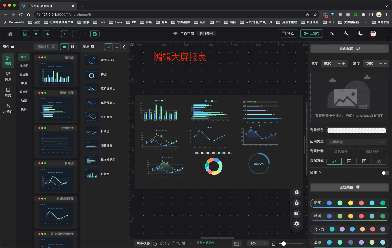 大屏设计器 大屏列表 大屏预览 大屏编辑